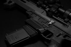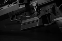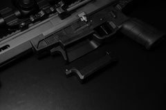 The Flared Magwell is installed by carefully pulling it apart at the front end and passing it through the trigger guard. Then fastening it in place using the two included 25mm M5 bolts.